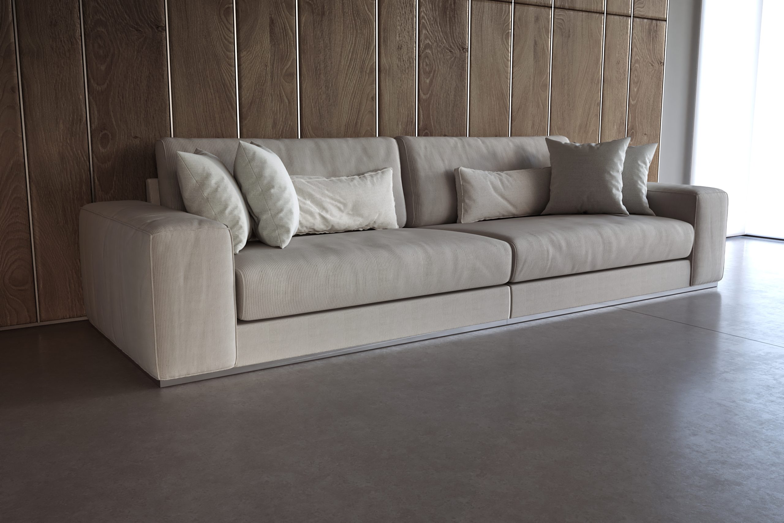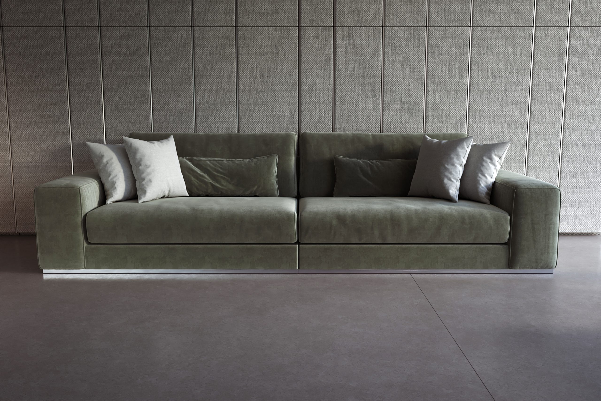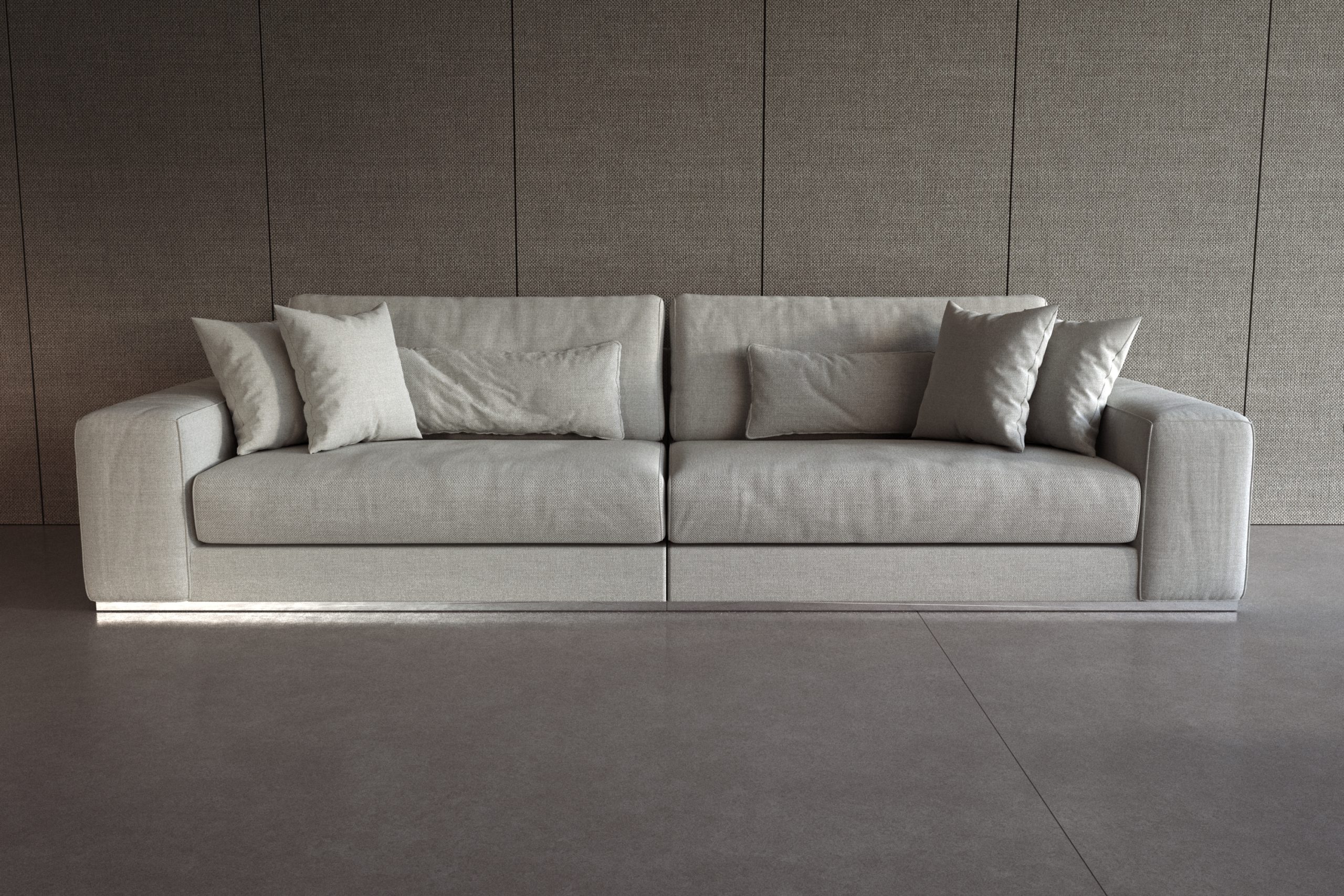 Sofá ELEGANCE, un clásico de MISURA que reúne lo mejor del Diseño Neoclásico de un sillón con presencia atemporal. Elegance se produce en formatos grandes y horizontales . La base de esta versión de Elegance cuenta con un zócalo de metal en acabados a elección : acero inoxidable en su versión PREMIUM , Aluminizado metálico , Esmaltado negro o balnco . También se fabrica a pedido personalizado.