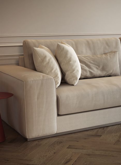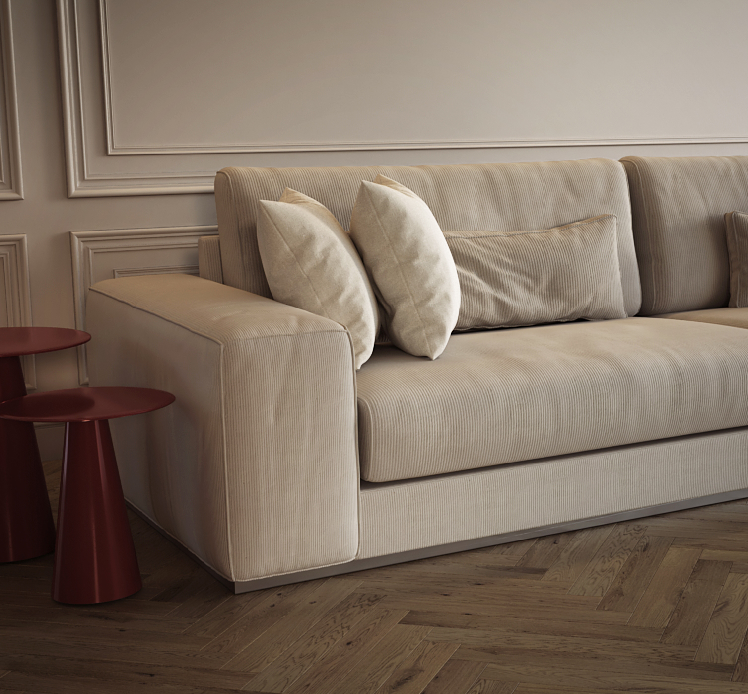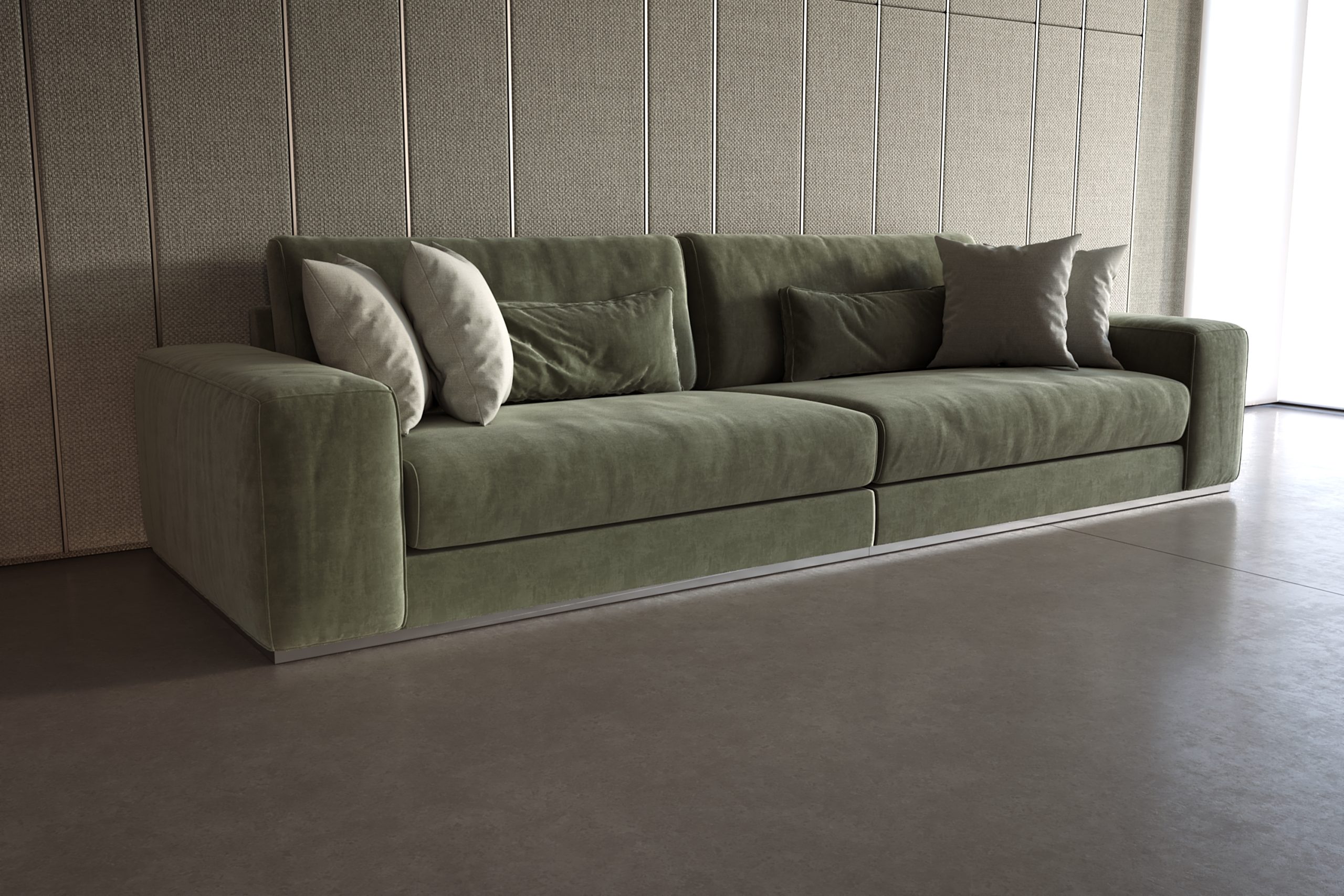 Sofá ELEGANCE, un clásico de MISURA que reúne lo mejor del Diseño Neoclásico de un sillón con presencia atemporal. Elegance se produce en formatos grandes y horizontales . La base de esta versión de Elegance cuenta con un zócalo de metal en acabados a elección : acero inoxidable en su versión PREMIUM , Aluminizado metálico , Esmaltado negro o balnco . También se fabrica a pedido personalizado.